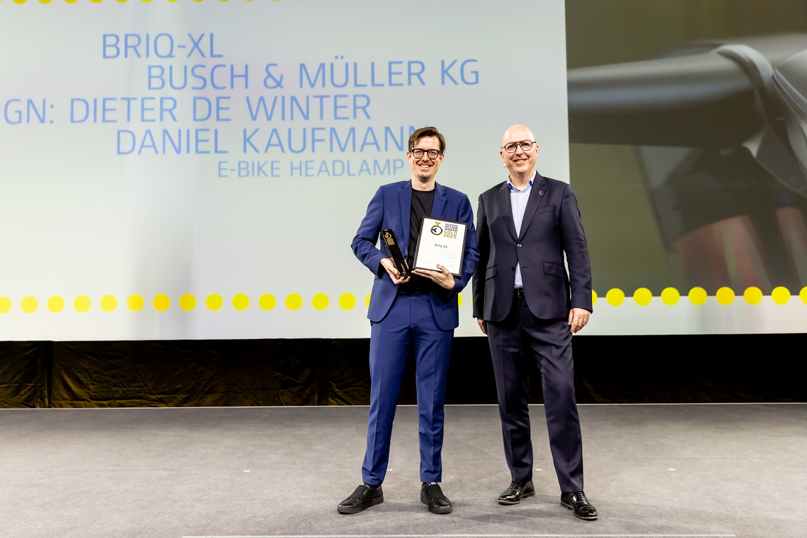 Nach dem German Design Award wurde Busch+Müller nun im Doppelpack ausgezeichnet. Der Kurvenlichtscheinwerfer Briq-XL hat gleich zwei Designpreise gewonnen. Aktuell erhielt er den prestigeträchtigen iF DESIGN AWARD sowie gestern den Fiets Innovatie Award in der Kategorie Fahrradinnovation des Jahres. Ihr niederländischer Außendienstler Kurt van Bindsbergen nahm den Preis in Amersfoort entgegen.