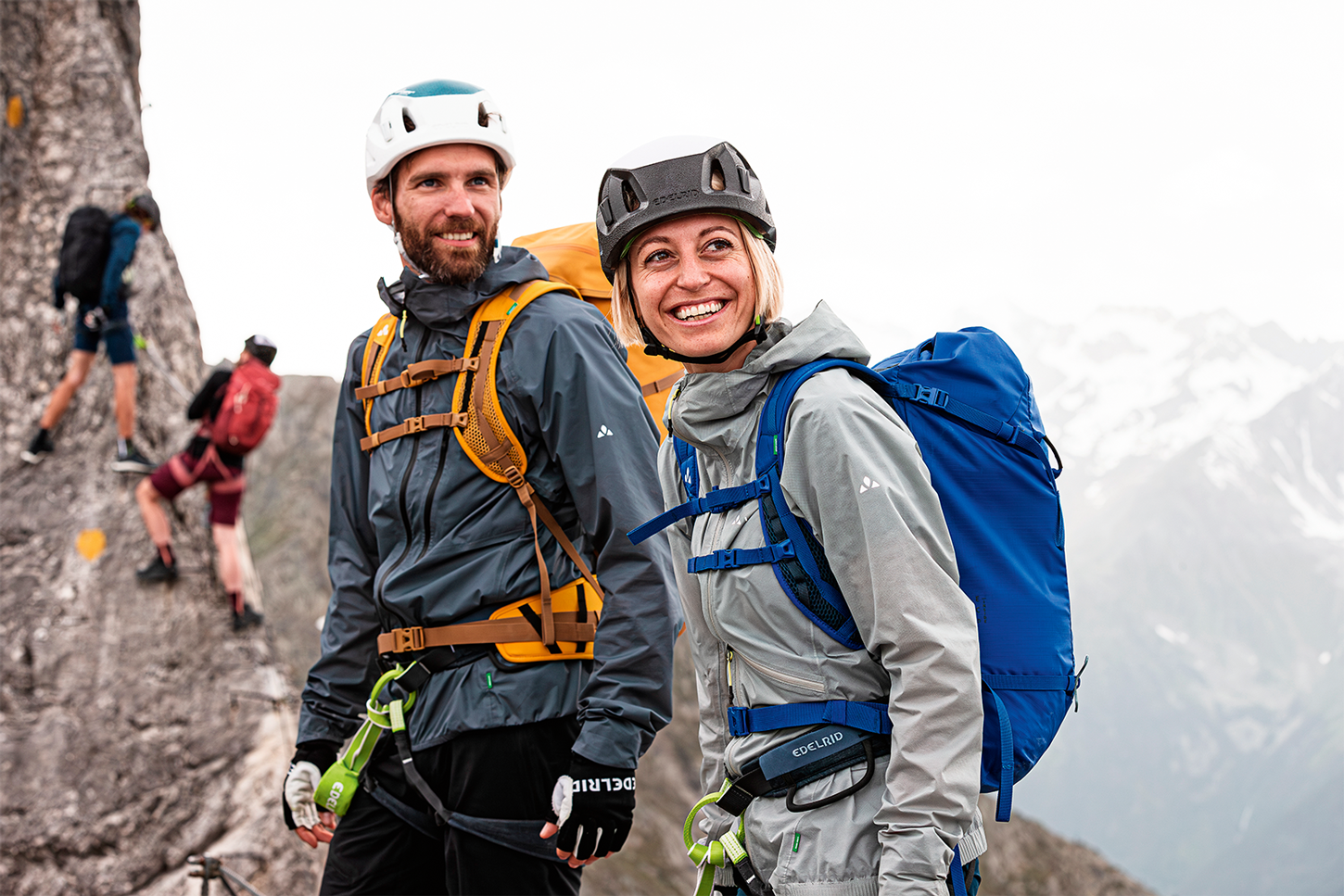 Die für die Funktion der Hardshelljacken nötige Imprägnierung ist ein Umweltthema für sich – auch dafür wurden bekanntlich lange die (wie man mittlerweile weiß) umweltschädlichen PFCs eingesetzt. Vaude etwa stattet alle seine Bekleidung seit 2018 mit PFC-freiem, umweltfreundlichem „Eco Finish“ aus. Diese wasserabweisende Ausstattung muss von Zeit zu Zeit erneuert werden: „Wir empfehlen, Wetterschutzbekleidung vor intensiven Einsätzen und nach jeder Wäsche zu imprägnieren“, sagt Benedikt Tröster. Dies lässt sich mit den passenden Pflegemitteln und unter Einhaltung der Pflegehinweise (siehe Angaben auf den Hersteller-Webseiten) einfach selbst erledigen, Vaude bietet aber auch einen Imprägnierservice per Post an.