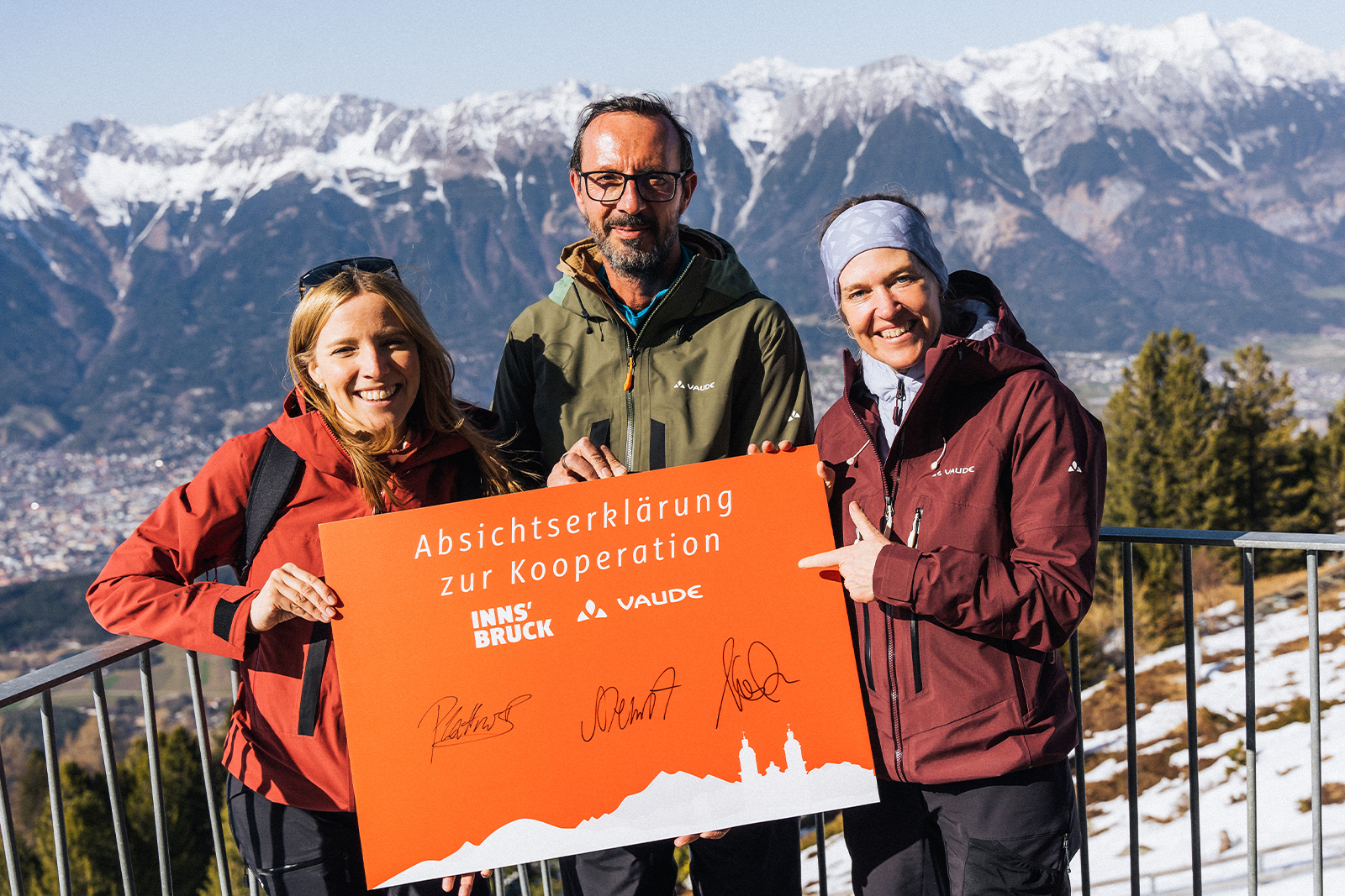 Nachhaltigkeit, Innovation und Zukunftsfähigkeit stehen im Zentrum der Kooperation zwischen VAUDE und Innsbruck Tourismus. Gemeinsam wollen die Partner umweltverträgliche Outdoor-Aktivitäten und die alpin-urbane Lebensfreude fördern.