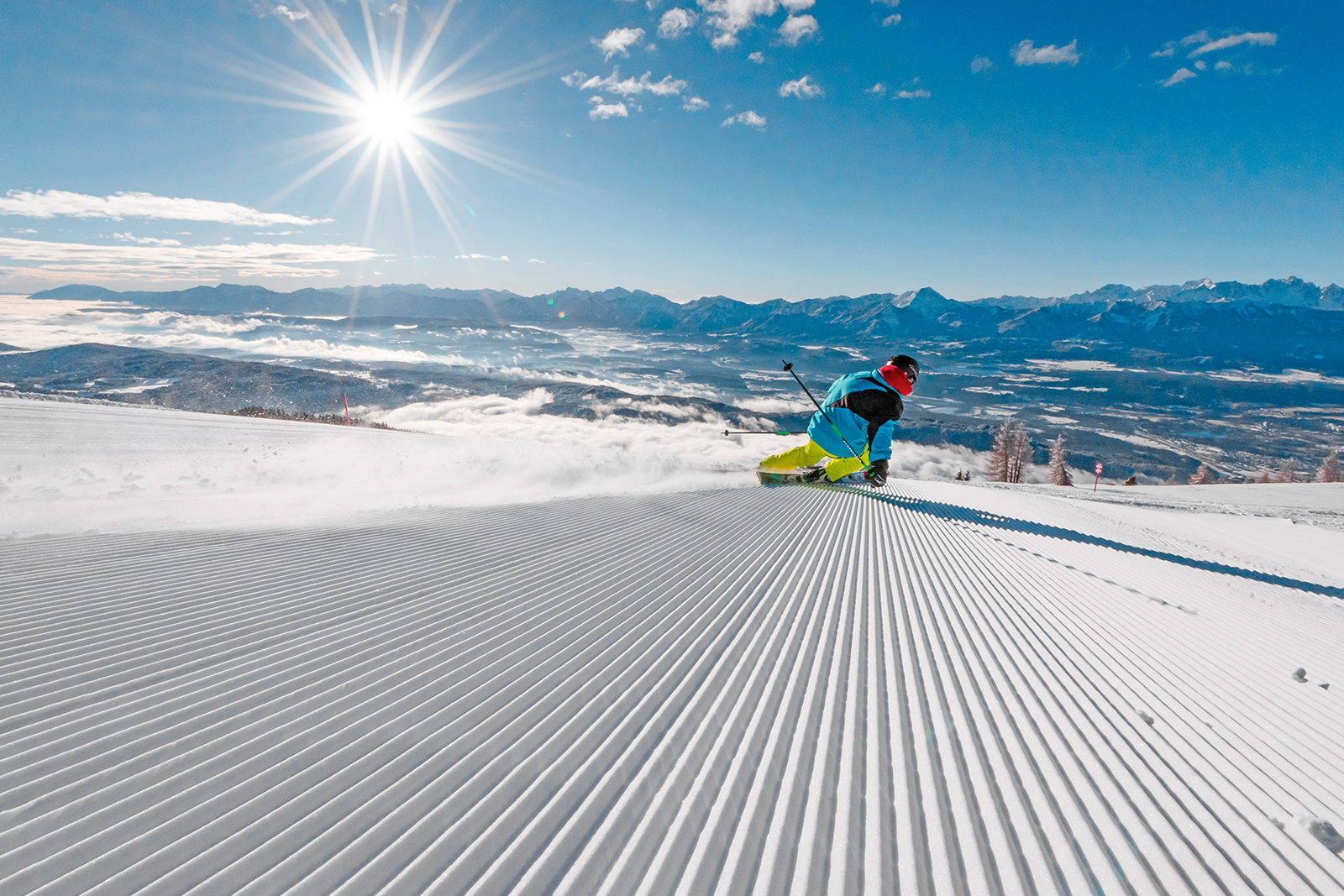 Am Nassfeld warten extrabreite Pisten und hervorragende Konditionen. Eine dieser Pisten ist die Garnitzenalm-Abfahrt Nr. 7 mit rund 1,6 km purer Carvingaction. Diese lässt sich wunderbar mit der angrenzenden Piste Nr. 8 Pontebbana abwechselnd genießen – für doppelten Fahrgenuss.