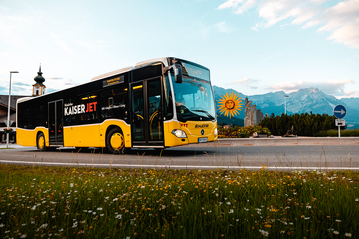 Autofrei als Wanderurlauber in der Region Wilder Kaiser unterwegs zu sein, kann ganz konkret etwa so aussehen, erklärt Krösslhuber: Zuganreise bis Kufstein (mit vielen Intercity- und Eurocity-Halten), von dort mit dem Bahnhofsshuttle zur Unterkunft (was kostenlos ist, wenn es ein Mitgliedsbetrieb der „Grünen Anreise“ ist, sonst um 16 € pro Person). Vor Ort verkehrt der „Kaiserjet“-Bus im Halbstundentakt zwischen den vier Orten der Region, zu Badeseen oder zu den vier Bergbahnen. Neben der Bergbahn geht es auch per Wanderbussen hoch zu Ausgangspunkten beliebter Wanderungen und auch wieder zurück – ebenfalls im 20- bis 30-Minuten-Takt. Abends gibt es einen „Dorfabendbus“, der bis 22.30 Uhr verkehrt, etwa um vom Appartment zu einem Restaurant zu gelangen.