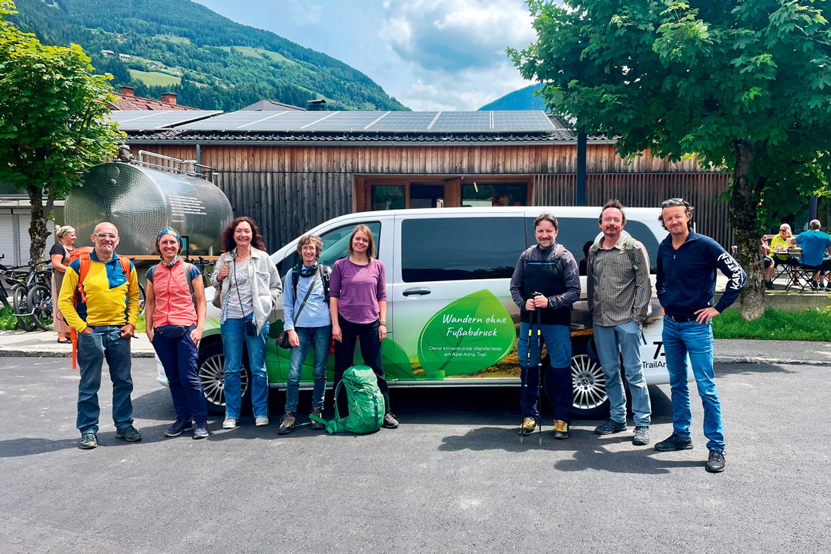 In drei Schritten legen die Anbieter detailliert dar, warum „Wandern ohne Fußabdruck“ kein überzogenes Versprechen ist. Schritt eins: Auf ein „Low Carbon Design“ wurde streng geachtet. Die Bahnanreise ist inkludiert, Vor-Ort-Shuttles werden mit einem E-Van durchgeführt, Unterkünfte nach Kriterien der Nachhaltigkeit ausgewählt. Im zweiten Schritt wurde der verbliebene CO2-Fußabdruck unabhängig berechnet. Für die Beispielberechnung wurde eine Bahn-Anreise von München nach Seeboden herangezogen: Eine „normale“ Wanderreise auf dem ­Alpe-Adria-Trail produziert 280 kg CO2. Die „Wanderreise ohne Fußabdruck“ aufgrund der gesetzten Maßnahmen 126 kg.